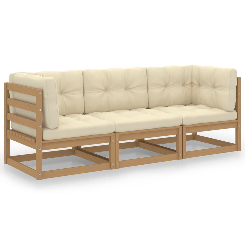 Sofaen er fremstillet af massivt fyrretræ, hvilket gør den robust og stabil. Havesofaen har en massiv konstruktion og kræver ikke meget vedligeholdelse. Hynderne tilføjer ekstra komfort. Udendørssofaen føjer et strejf af rustik charme til dit udendørsområde.
