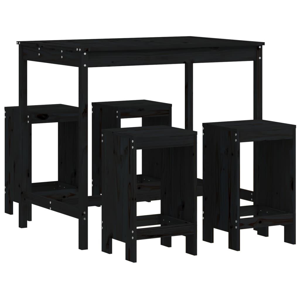 vidaXL barsæt til haven 5 dele massivt fyrretræ sort