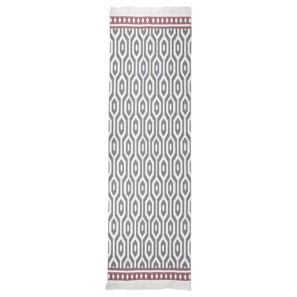 Dette gulvtæppe er fremstillet af 100 % bomuld, så det er blødt og behageligt at gå på med bare fødder. Indendørstæppet kan nemt vaskes ved 30 °C på et delikat program. Gulvtæppet kan vendes, så det kan bruges på begge sider. Det kan også bruges som et tæppe, når du vil tage en lur.