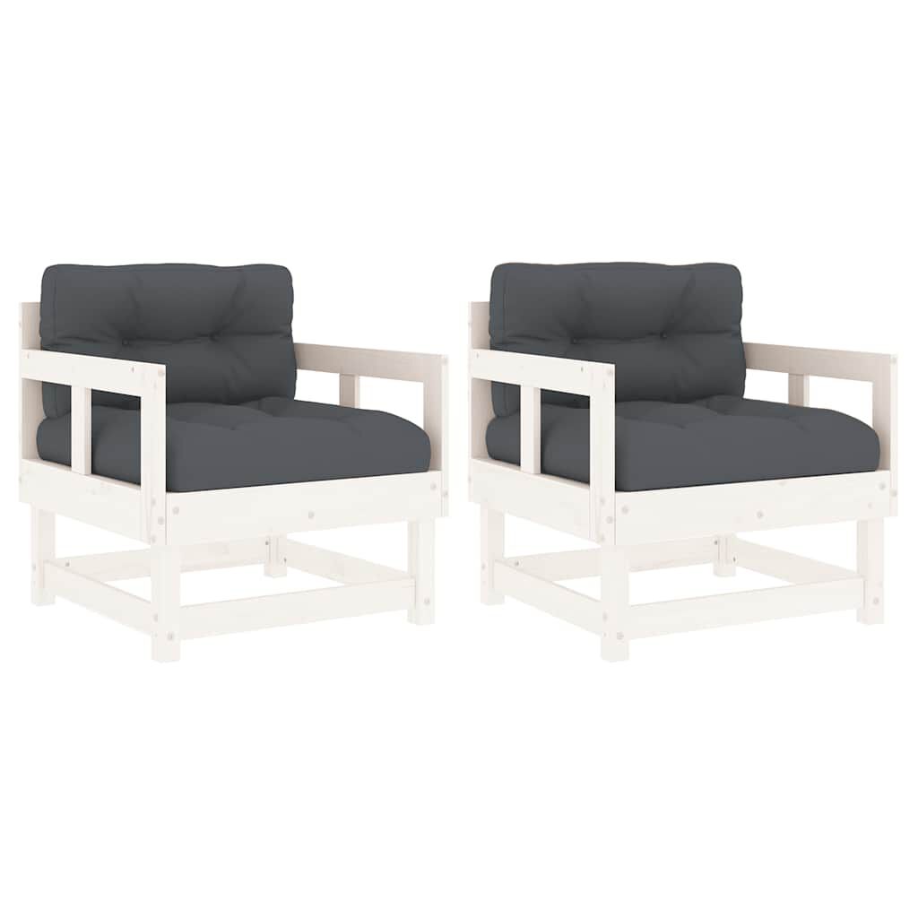 vidaXL havestole med hynder 2 stk. massivt fyrretræ hvid
