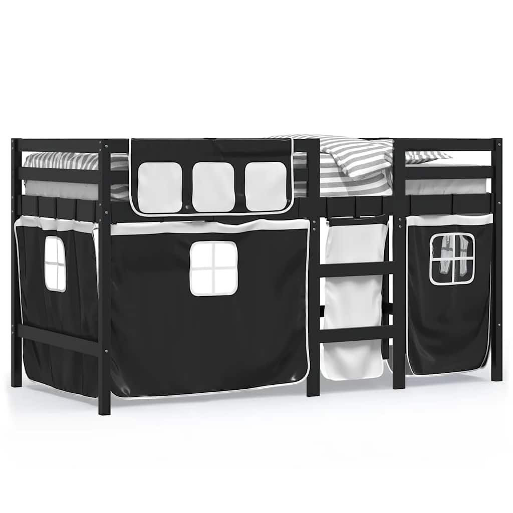 Denne højseng til børn er fremstillet af massivt fyrretræ. Den er designet til masser af underholdning samt til optimering af plads.