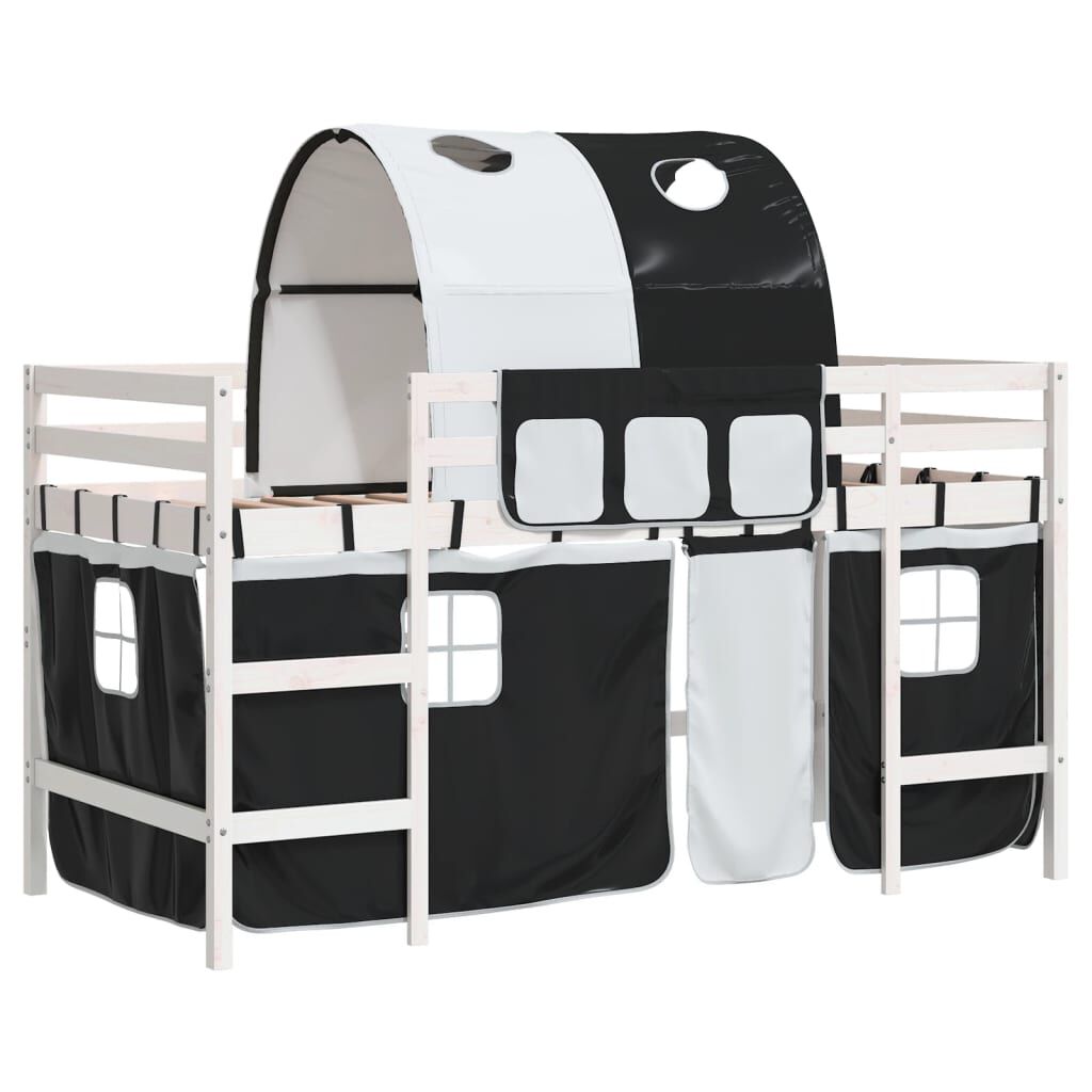 vidaXL højseng med tunnel 90x200 cm massivt fyrretræ hvid og sort