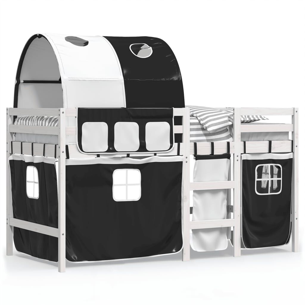 vidaXL højseng med tunnel 90x200 cm massivt fyrretræ hvid og sort