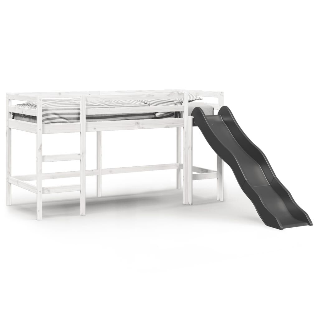Denne højseng til børn er fremstillet af massivt fyrretræ. Den er designet til masser af underholdning samt til optimering af plads.
