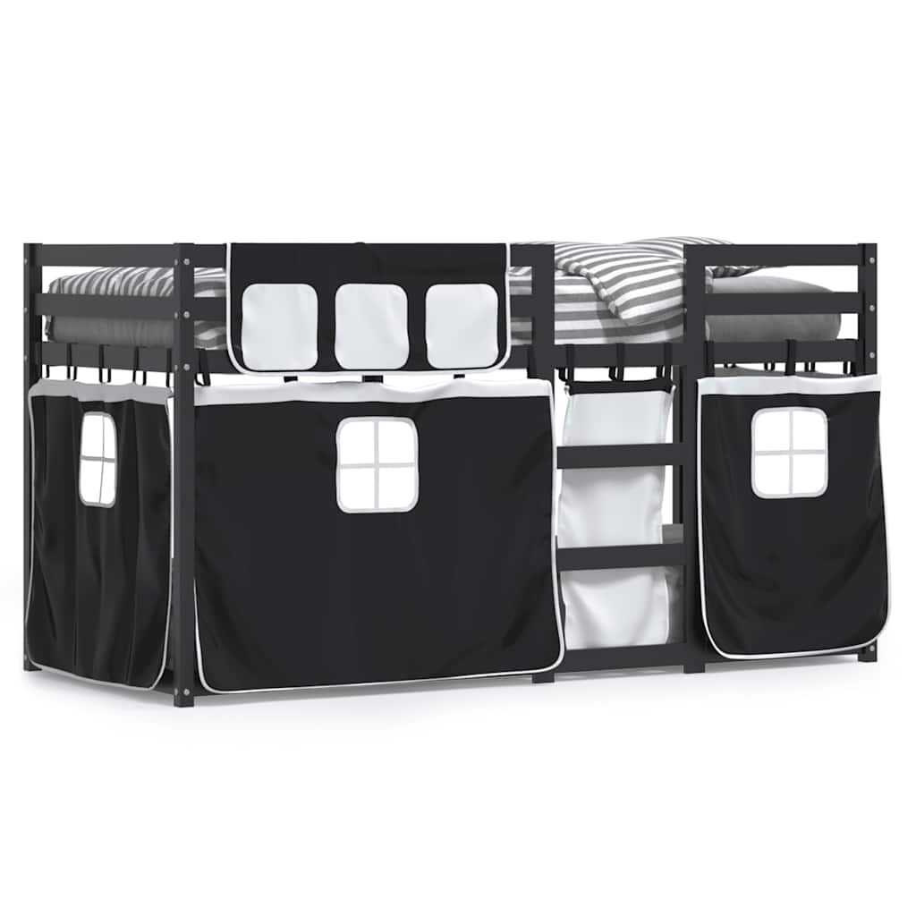 vidaXL køjeseng med gardiner 90x190 cm massivt fyrretræ hvid og sort