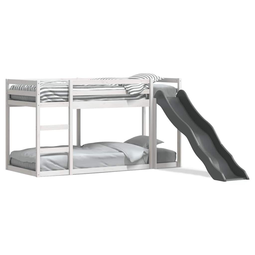Denne køjeseng i træ med rutsjebane og stige er designet til underholdning samt optimering af pladsen.