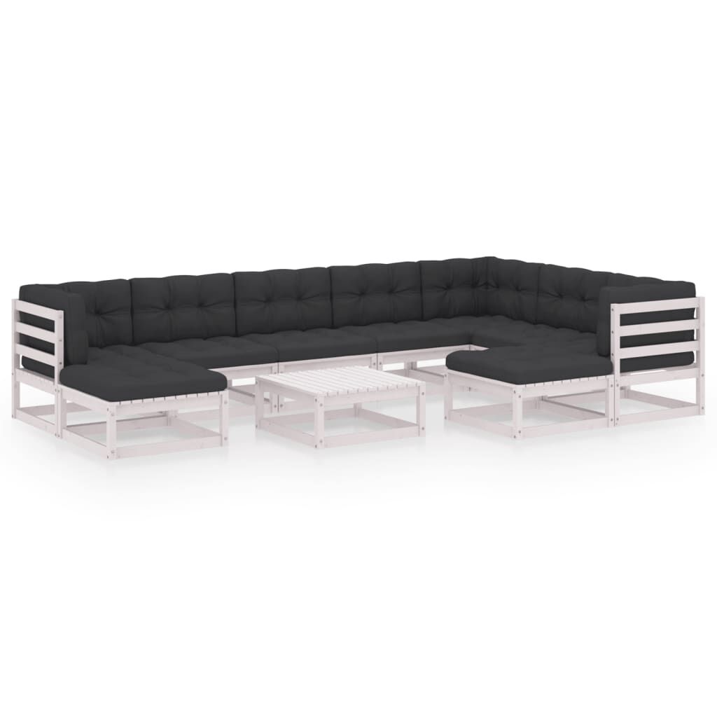 vidaXL loungesæt til haven 10 dele med hynder massivt fyrretræ hvid