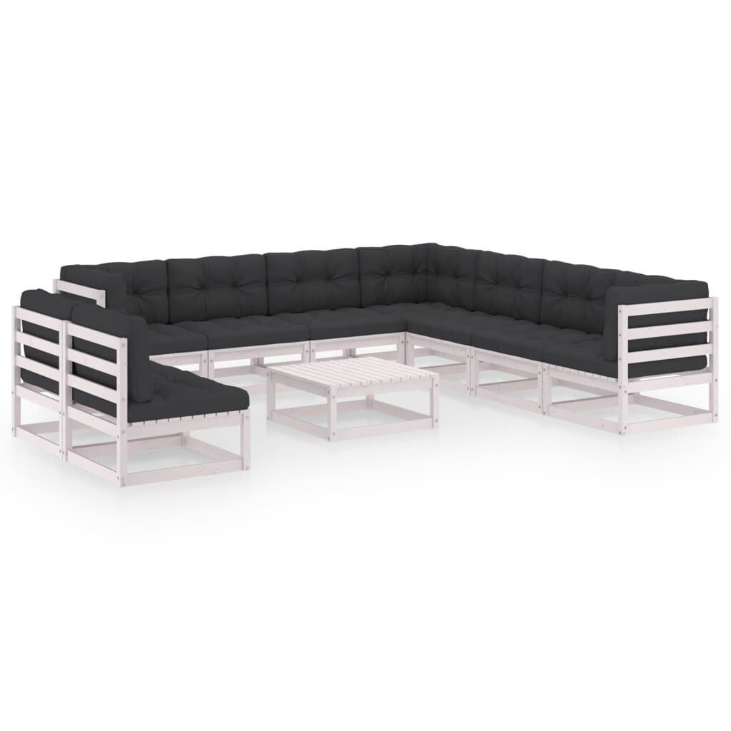 vidaXL loungesæt til haven 10 dele med hynder massivt fyrretræ hvid