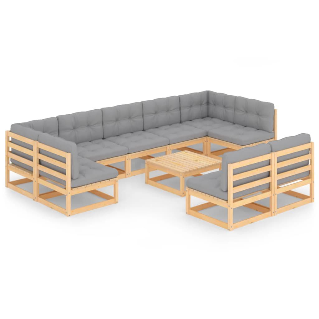 vidaXL loungesæt til haven 10 dele med hynder massivt fyrretræ