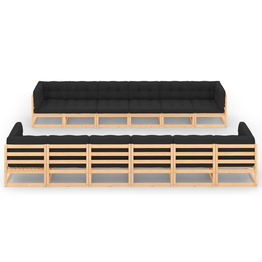 vidaXL loungesæt til haven 12 dele antracitgrå hynder massivt fyrretræ