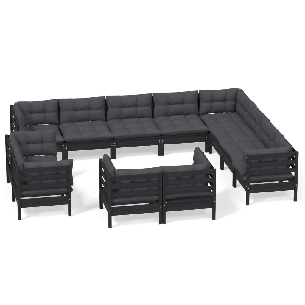 vidaXL loungesæt til haven 12 dele med hynder massivt fyrretræ sort