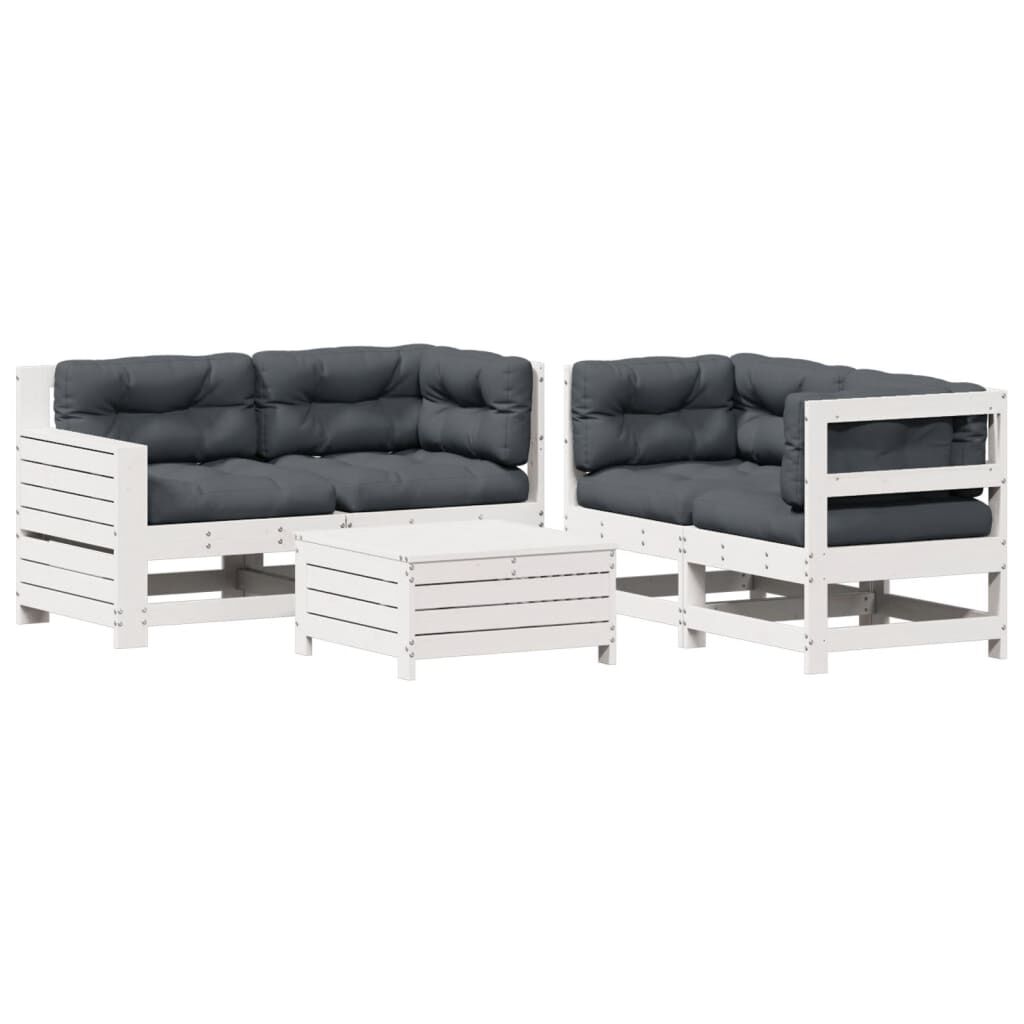 vidaXL loungesæt til haven 5 dele massivt fyrretræ hvid