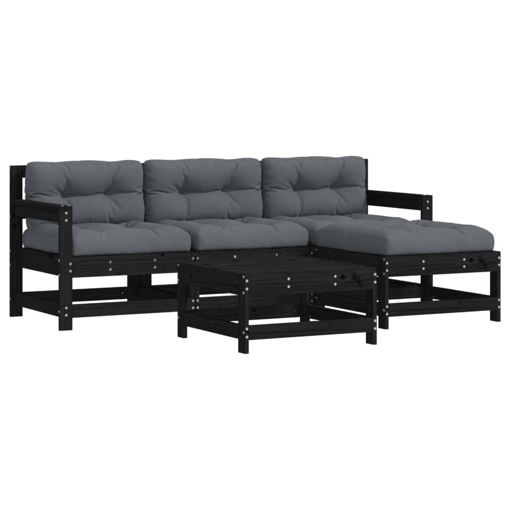 vidaXL loungesæt til haven 5 dele med hynder massivt træ sort