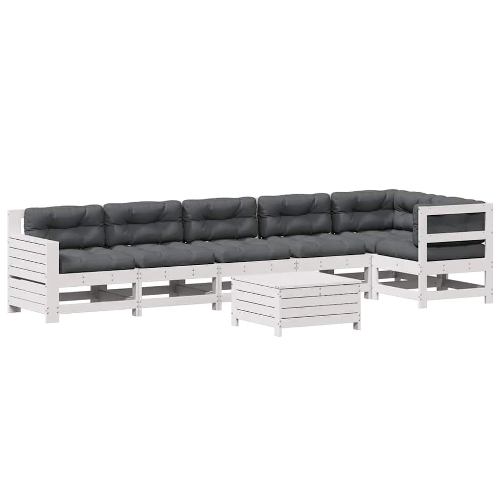 vidaXL loungesæt til haven 7 dele med hynder massivt fyrretræ hvid