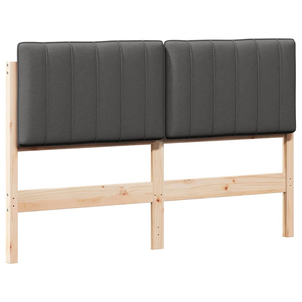 vidaXL Polstret sengegavl Brun og mørkegrå 135 cm Massiv fyrretræ