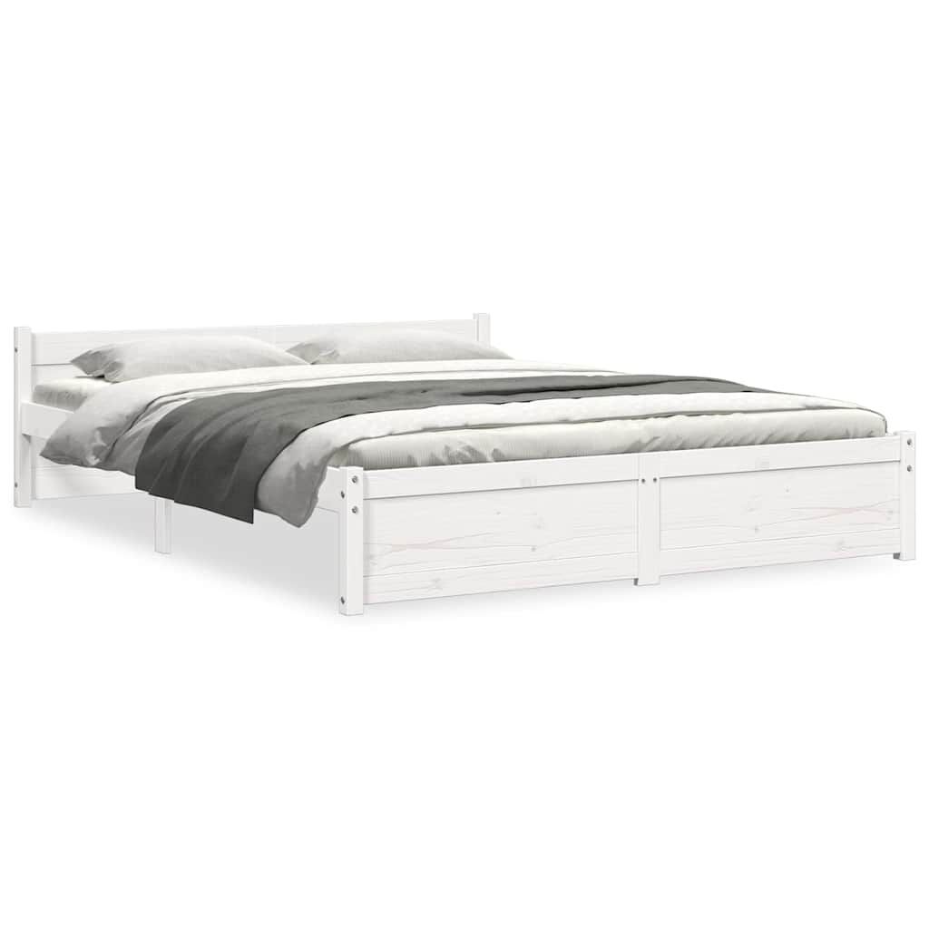 vidaXL sengeramme 135x190 cm dobbelt massivt fyrretræ hvid