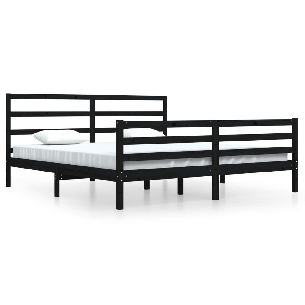 vidaXL sengeramme 200x200 cm massivt fyrretræ sort