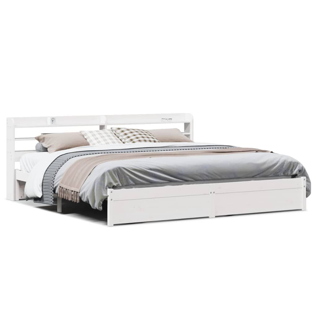 vidaXL Sengeramme med hovedgærde uden madras Hvid 200x200 cm