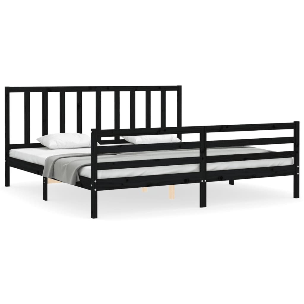 vidaXL sengeramme med sengegavl 200x200 cm massivt træ sort