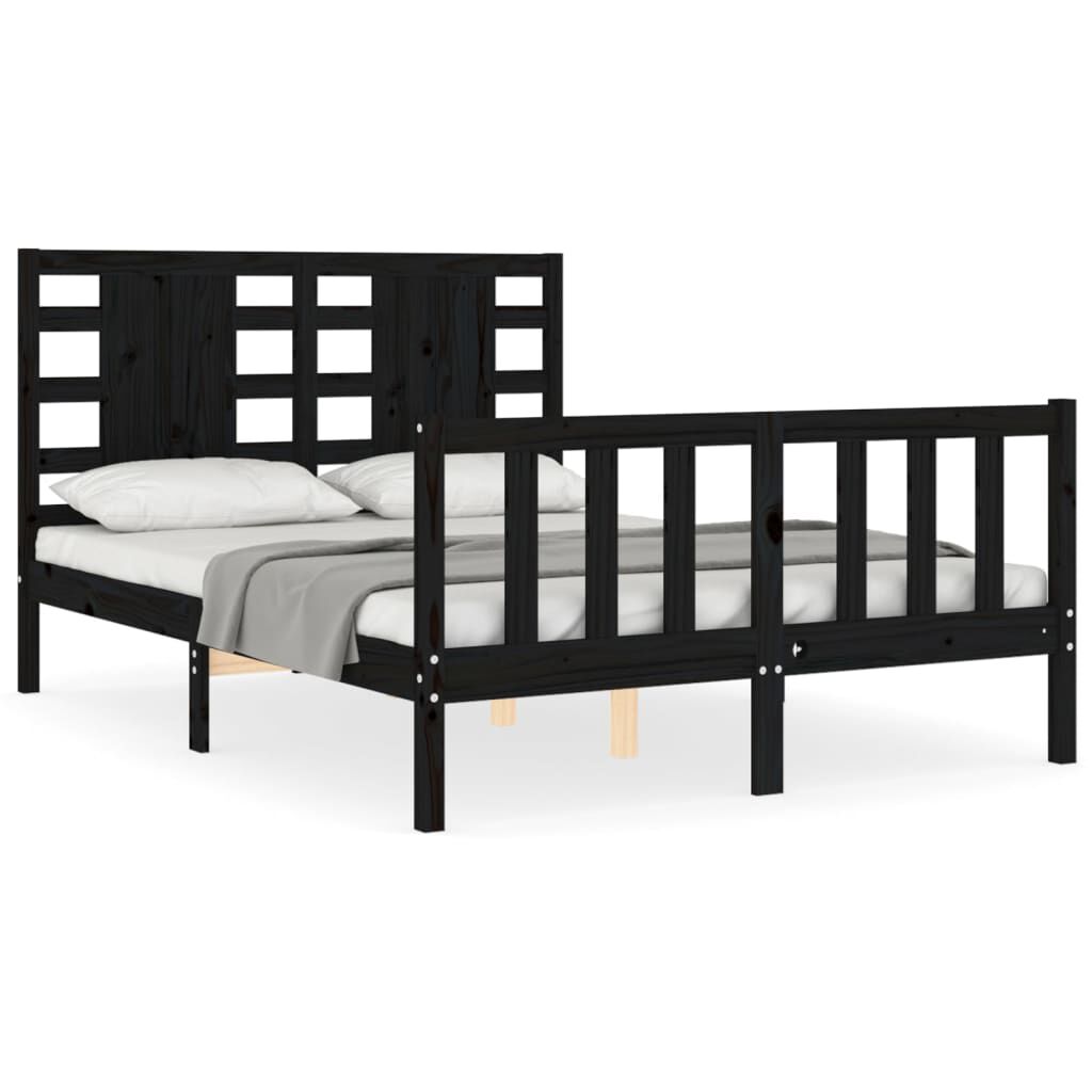 vidaXL sengeramme med sengegavl dobbelt massivt træ sort