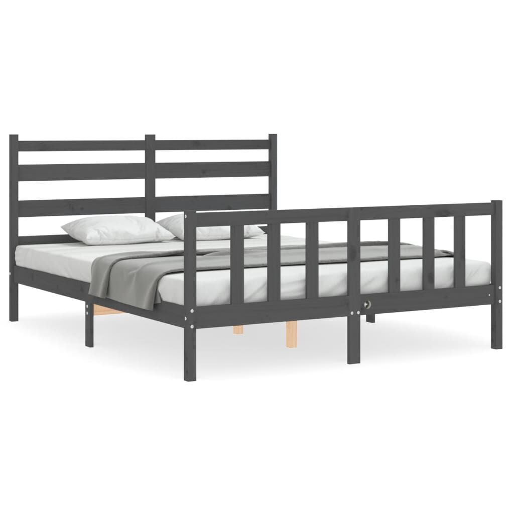 vidaXL sengeramme med sengegavl kingsize massivt træ grå