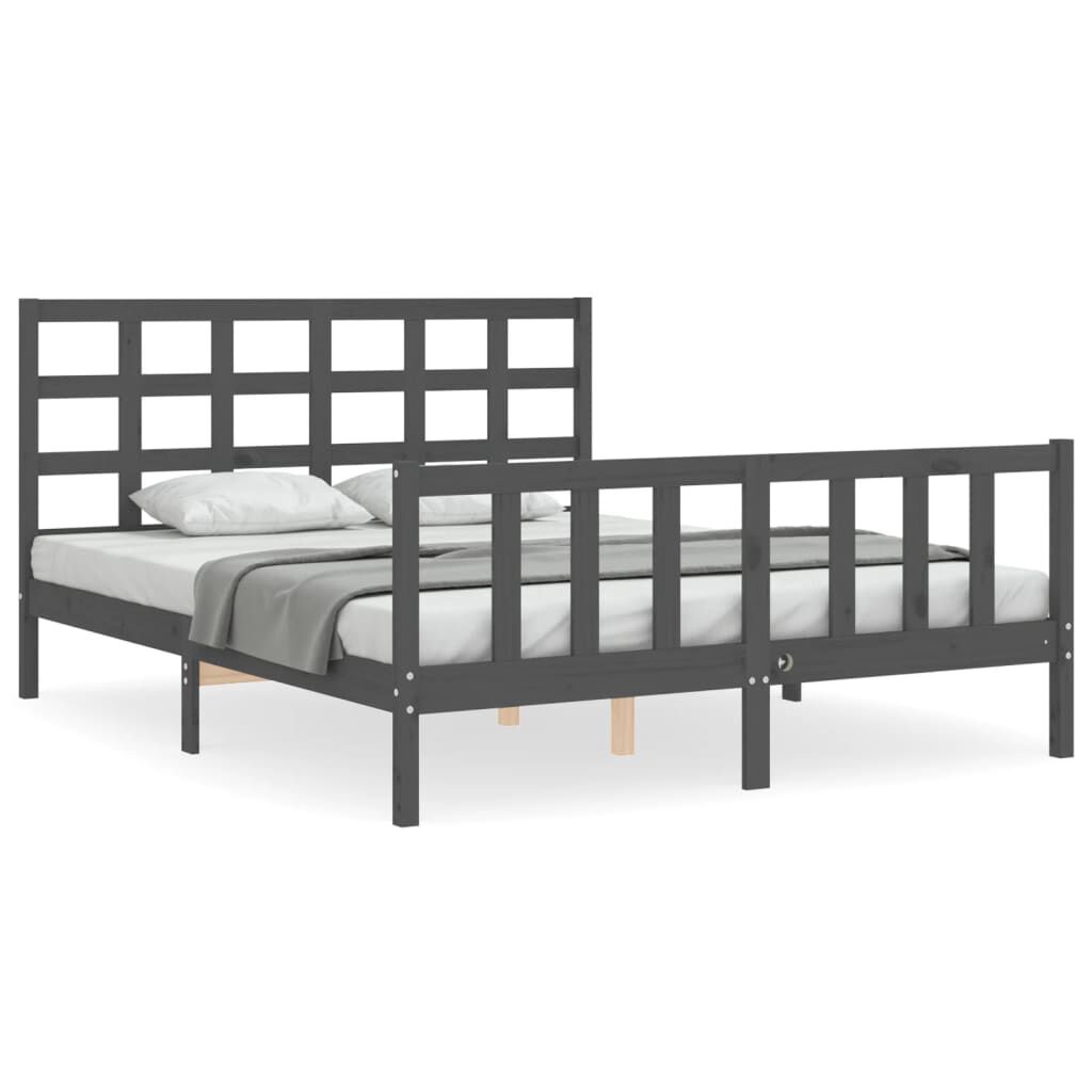 vidaXL sengeramme med sengegavl kingsize massivt træ grå
