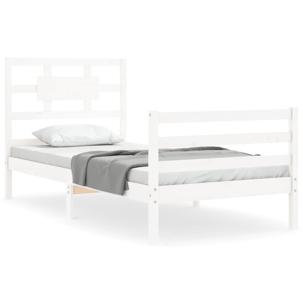 vidaXL sengeramme med sengegavl Single massivt træ hvid