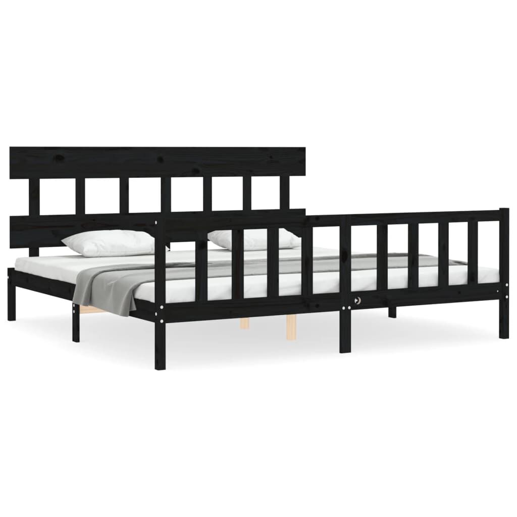 vidaXL sengeramme med sengegavl Super King Size massivt træ sort