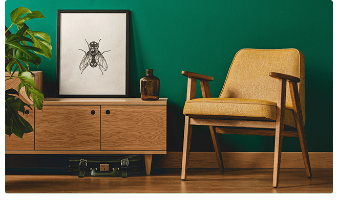 Populære retrofarver er sennepsgul, blød grøn, lys orange og pasteller som mynte og støvet pink. Retro i disse dage er let og lyst og bruger en masse farvekombinationer, som lyse pasteller med det typiske, mørke retro-træ. Tilføj guld- eller bronzetilbehør som et sidste touch!
