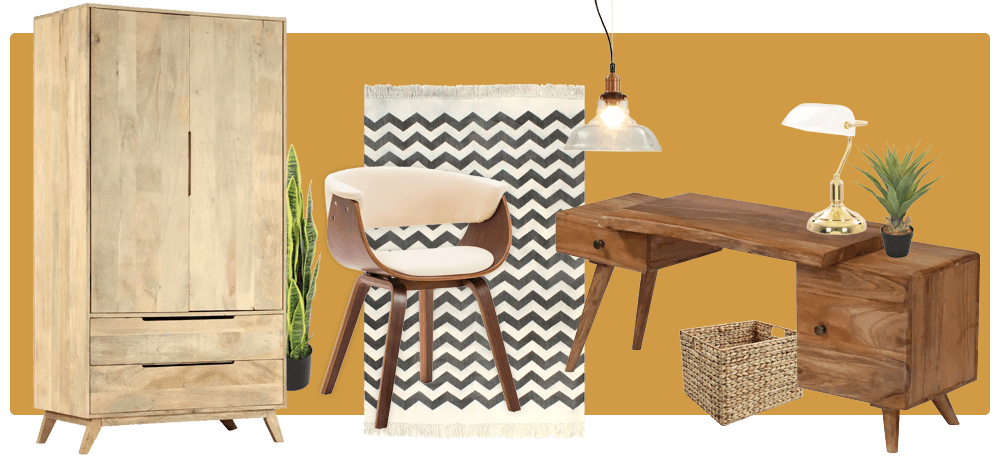 En ting, du ikke kan undvære i en retro-indretning, er de buede former og bløde linjer i møbler og tilbehør. Retro-møbler kan også kendes på deres koniske ben og brugen af træ. Dette kan være enten mørkt eller lyst træ, der kan bruges i samme rum. Materialer, der passer til retro-stilen, er træ, rattan, plast, kork, jute, uld og fløjl.