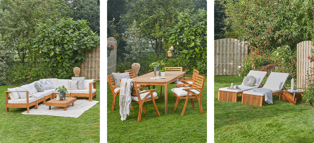 Havemøbler af træ er smukke på en unik måde. Hver træsort har sine egne åremønstre og karakteristika, der gør, at den skiller sig ud. Forskellige trænuancer giver behagelige kontraster, mens møblernes design gør, at de passer til din indretning.