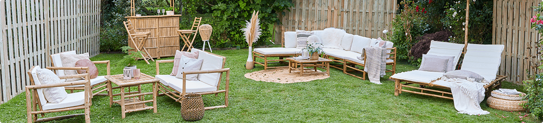 Den tropiske stemning i din have er ikke komplet uden masser af planter - så hvorfor ikke vælge et højbed i bambus med espalier? Du kan også inddele dit loungeområde med et bambushegn. Det vil skabe et hyggeligt og indbydende sted. Fyld dine bambushavemøbler med tæpper og puder i naturlige nuancer eller livlige farver for en boheme-stemning.